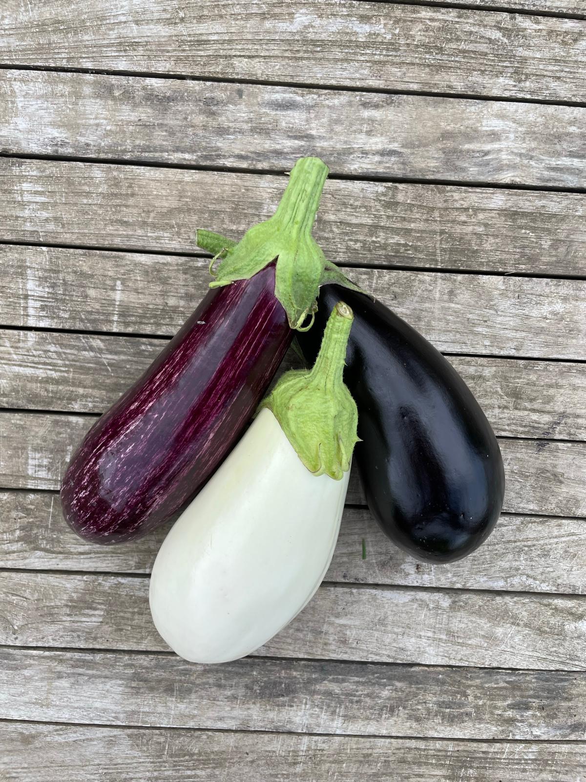 AuberginenAuberginen (auch Eierfrüchte genannt) sind beliebte Gemüsesorten, die zu der Familie der Nachtschattengewächse gehören. Sie sind in der Regel dunkelviolett bis schwarz, können aber auch weiß, grün oder gestreift sein, je nach Sorte. Auberginen haben eine glatte, glänzende Haut und ein weiches, saftiges Inneres mit winzigen essbaren Samen. Auberginen sind äußerst vielseitig und können auf verschiedene Arten in der veganen Küche verwendet werden. Hier sind einige Ideen: - Gebratene oder gegrillte Auberginen: Schneide die Auberginen in Scheiben oder Würfel und brate sie in einer Pfanne mit etwas Öl oder grille sie, bis sie weich und leicht gebräunt sind.